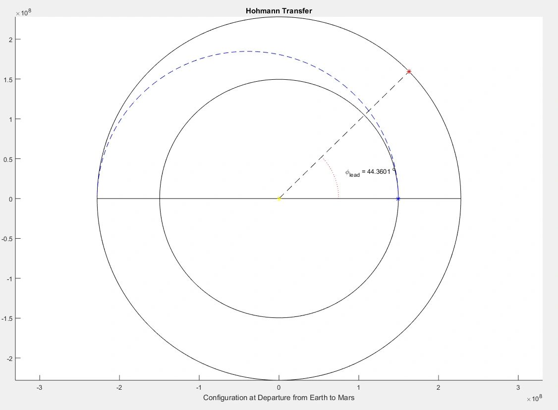 Simulate the trajectory and planetary configuration at departure from home planet.